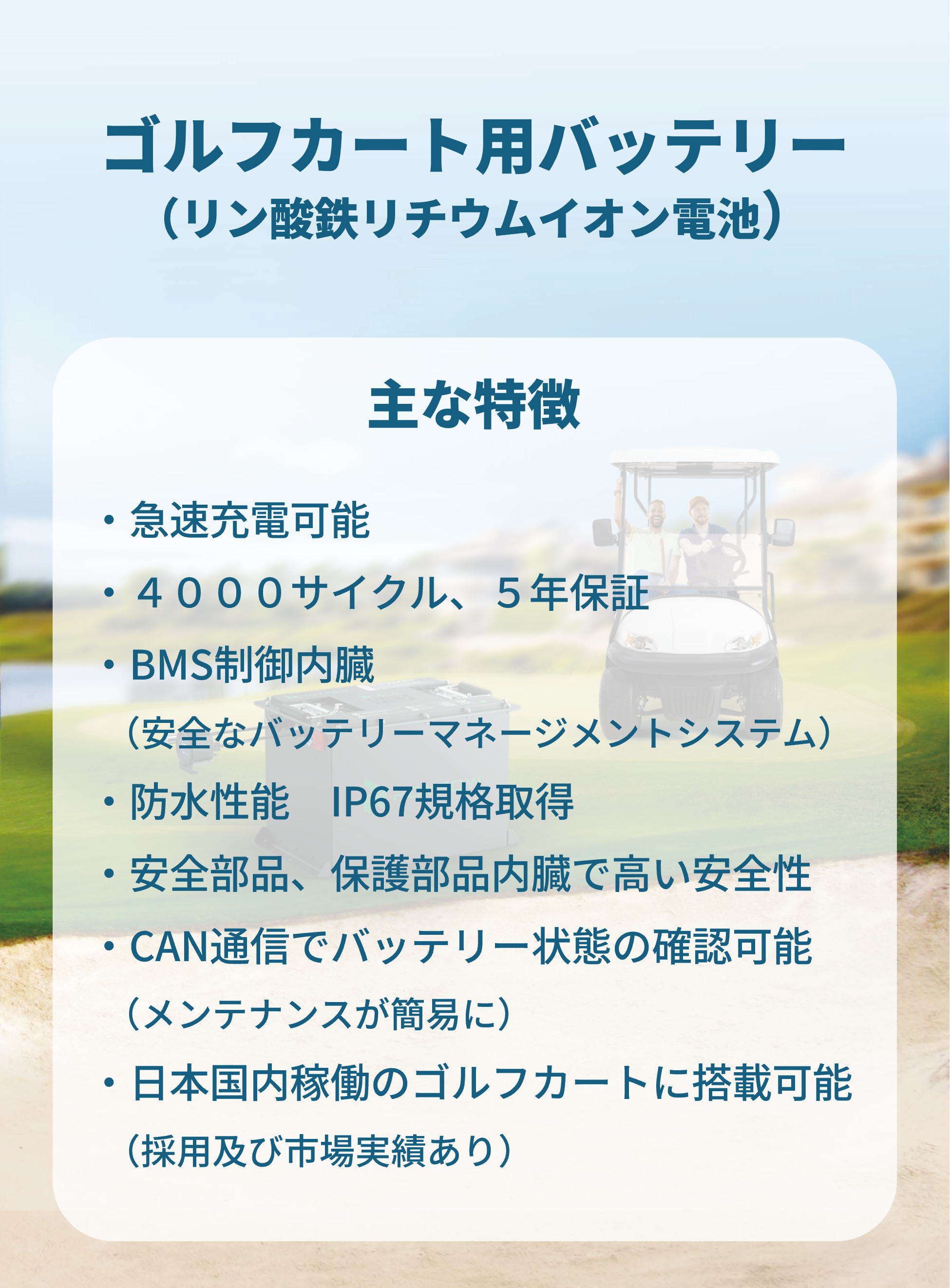 ゴルフカートは、多くはガソリンまたは鉛蓄電池を動力としていましたが、リチウムイオン蓄電池搭載モデルも増え、バッテリーの交換も増えてきています。
